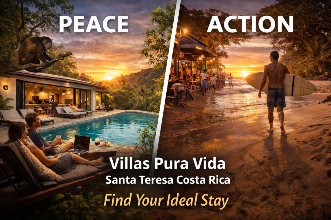 Santa Teresa looks relaxed on a map. In real life, where you stay shapes the whole trip. Some travellers want to step straight into the surf scene. Others want to come home to quiet nights, trees, birds, and enough space to actually rest. If you are comparing villas in Santa Teresa Costa Rica, that difference matters more than people expect.
